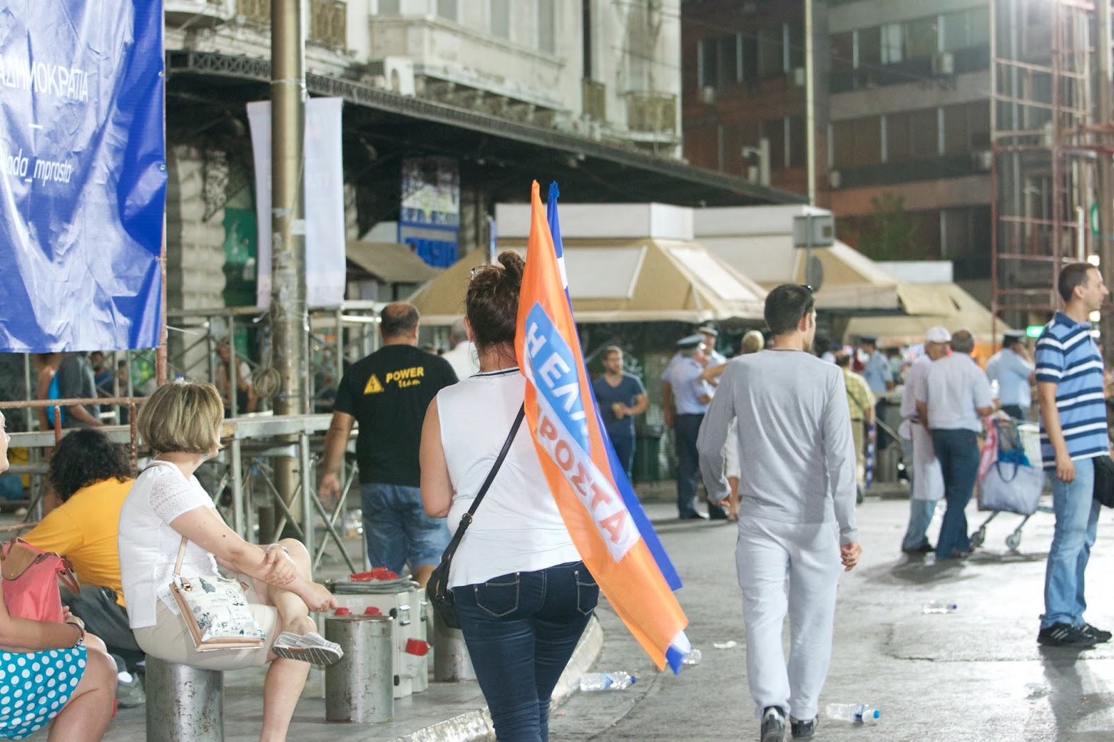 In the evening we met up with a few people from our group and walked left out of the hotel to Omonia Square. There was a rally for the upcoming election and lots of police presence - I took a picture of a group of officers, but was asked to delete it - yikes! But all was good and we felt safe walking at night.