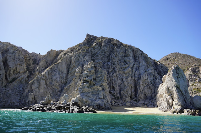 The Arch and Lovers beach at Land's End can only be reached by water taxi.  We went by on our whale watching boat.